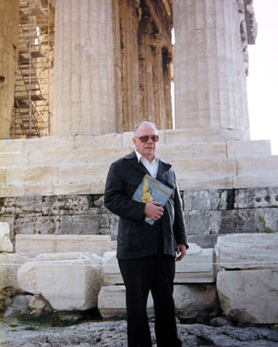 Ante la Acropolis de Atenas en una visita a Grecia